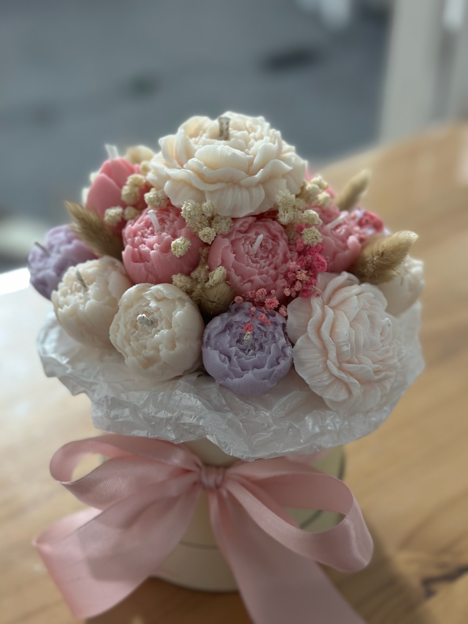 Each bouquet is handmade with care, making every piece unique. We pour creativity and attention into every detail to make our candles look like real flowers, turning them into elegant works of art.